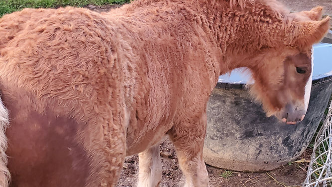Cherry was born early June of 2023 to Lexlin’s Jewel Cahill and was sired by San Cler Nazareth of Bellissima Farms. She’s a chestnut filly that carries one Agouti, one Pearl, one Pattern-1, and one H2 gene. Most of those genes really do not impact her appearance at all other than the “shorty” gene that she has that should set her up to be about 13.2hh at full maturity. Otherwise, she’s indistinguishable from a standard chestnut filly visually.