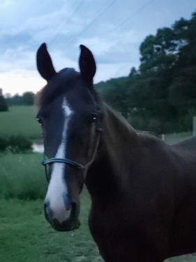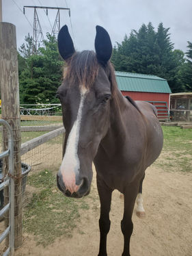 This is "Sum Kinda Poison." We call him Poison. He's the final of our four non-Gypsy Vanner horses that wander our property, and he's a Tennessee Walking Horse (fully papered). He's the only gelding on our farm, and we totally understand how other people feel about geldings because of his friendly, goofy personality. I sometimes describe him as Scooby Doo if Scooby Doo were a horse. He'll do anything for a Scooby Snack. His facial expressions and ears are so highly emotive.