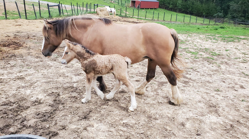 Duna was born August 1st, 2023. Within several weeks, we had her DNA results back. Like her dam, she was a bay-based dun horse (homozygous black), but like her sire, she was homozygous for dun, which is a special thing as a Gypsy Vanner Horse, since there are only a handful of homozygous dun mares in the GVHS registry. If she has her own foals someday, they will always carry a dun gene.